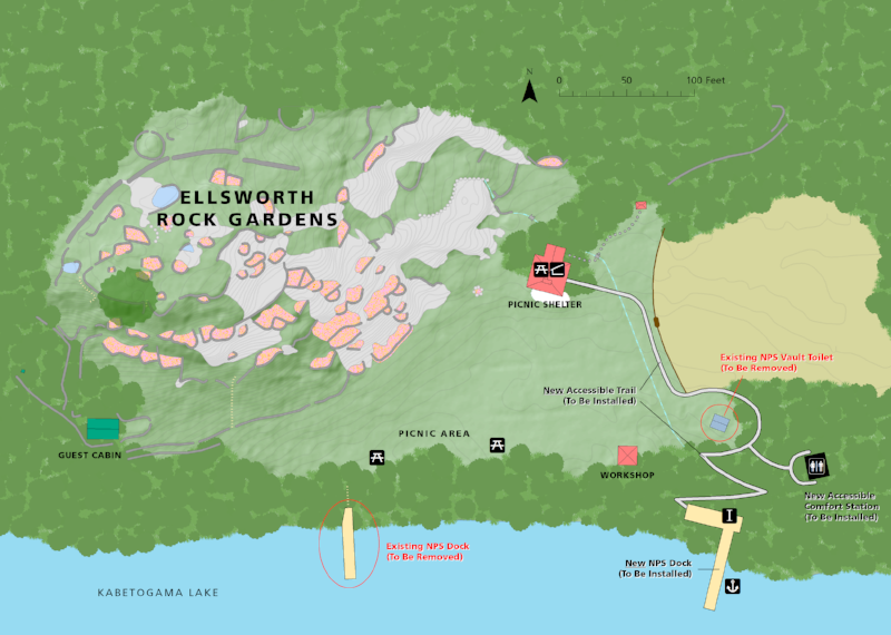 Changes will be taking place at Ellsworth Rock Gardens starting June of 2018. In the works is a two-year project that will improve visitor accessibility, provide better information about the history of gardens, and increase dock space. The dock system will be moved to a location that is closer to the Ellsworth’s original dock which will enhance sharing the story of the site. This year, phase 1, will include construction of an accessible comfort station, accessible path to the picnic shelter, and development of interpretive media. The new dock system will be completed by spring 2019 and Jack’s gardens will continue to charm and welcome a wider audience.