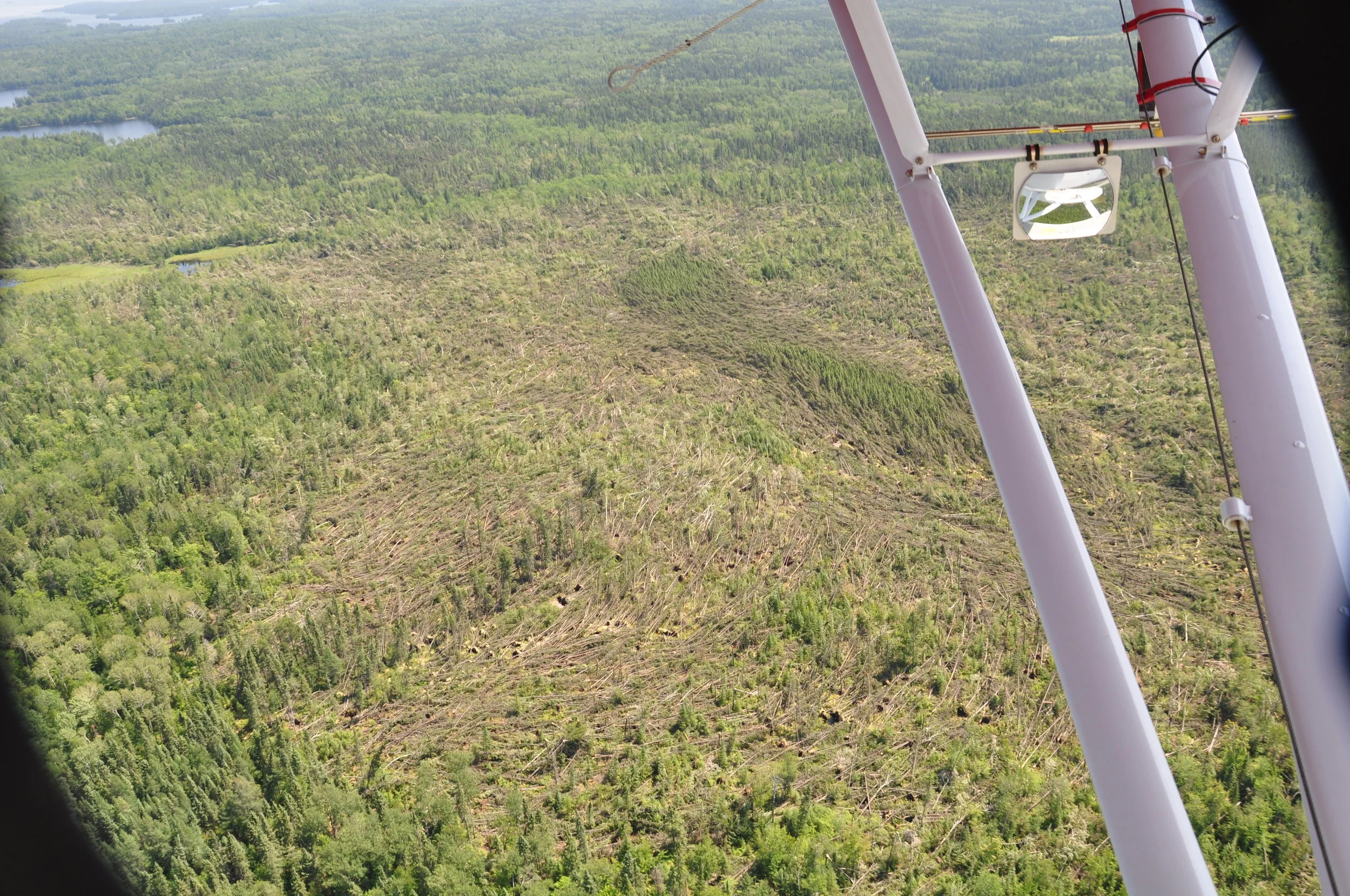 Most of the downed trees occurred in aspen-dominated stands or within a black spruce bog, and the likelihood of future fires related to this event is low or will be of a minor scale, according to fire management officials at Voyageur National Park.