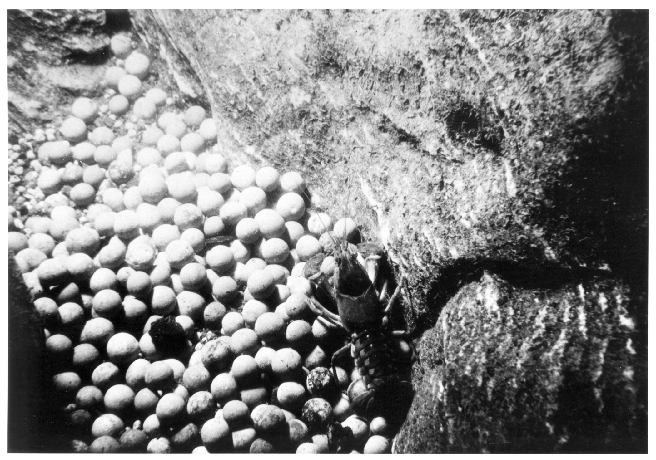 A hoard of musket balls in the rocky bottom of the French River. Courtesy of the Royal Ontario Museum.
