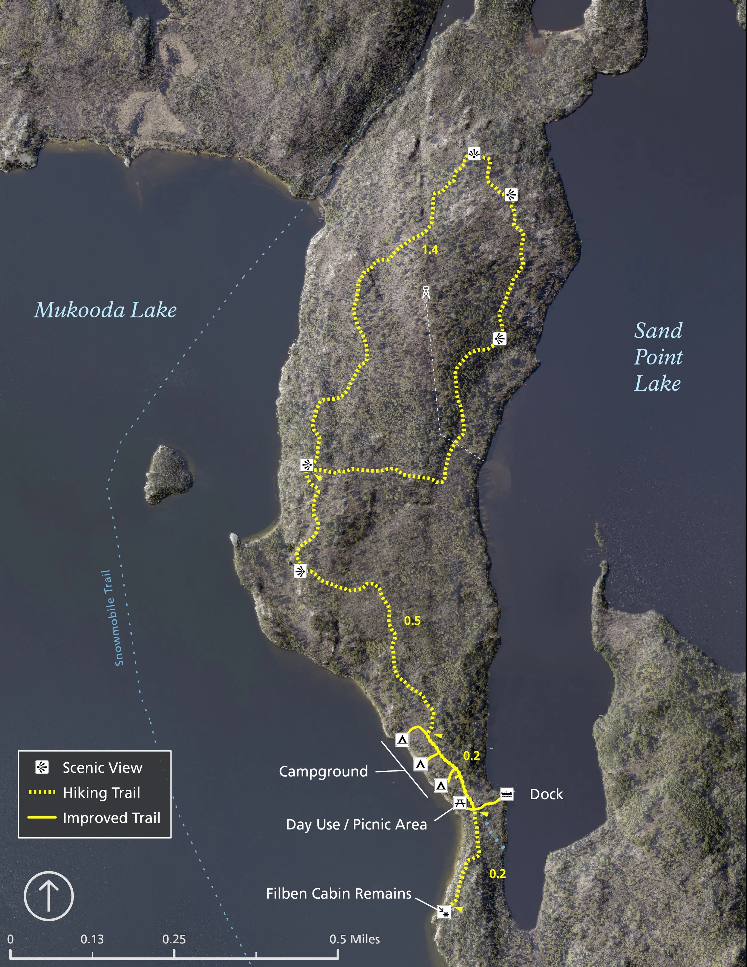 The Voyageurs Conservancy provided funding for two young adult crews that contributed 2,058 service hours. These crews, alongside a dedicated National Park Service team, completed the trail late in 2020 adding the only hiking trail east of Ash River in the park! This project increases recreation access for thousands of park visitors who love exploring the Crane and Sand Point Lakes area. As you explore the Mukooda Hiking Trail, we hope you enjoy the dense pine forests and rocky ridgelines that make Voyageurs National Park so unique. Thank you to our members, the National Park Foundation, and REI Co-op for their generous support of this project.