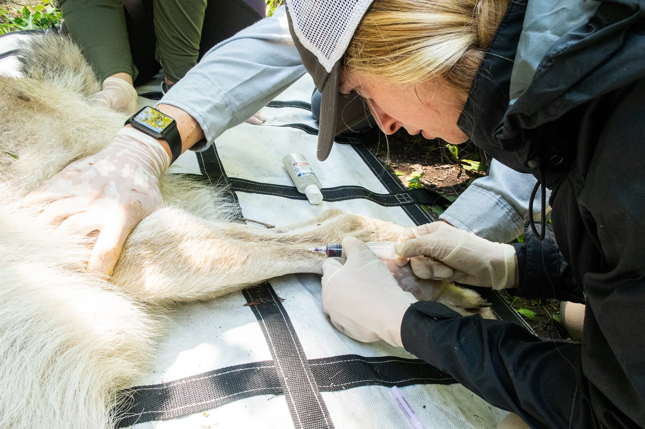 Her research began with collaring wolves early in the season to track their location. From here, Maeve tracked wolves’ behavior by hiking through the thick northwoods to investigate “cluster” sites, areas where a wolf has spent an extended period of time. These sites may reveal killed prey, beaver hunting attempts, bed or rendezvous sites, and even wolf pups.